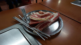 After walking around Sinchon area dear and me found a korean BBQ restaurant buffet that cause only 9000 KRW per pax. The name is Yondae Kkeopdegi Korean BBQ Restaurant "연대껍데기". It is very welcome by the local korean and all the indication in this restaurant is korean language too. Dear and me went in to the shop and we had been assign to a corner to sit. Mineral water is free flow whereas for the other beverage you need to pay as what you had. Dear and me feel that this korean restaurant serve very good marinated meat. Where you can eat all you can without limited of time. 9000won per pax for korean BBQ is really cheap in South Korea you cannot find second shop here anymore :) Dear and me had quote this restaurant as MUST TRY in Sinchon area.